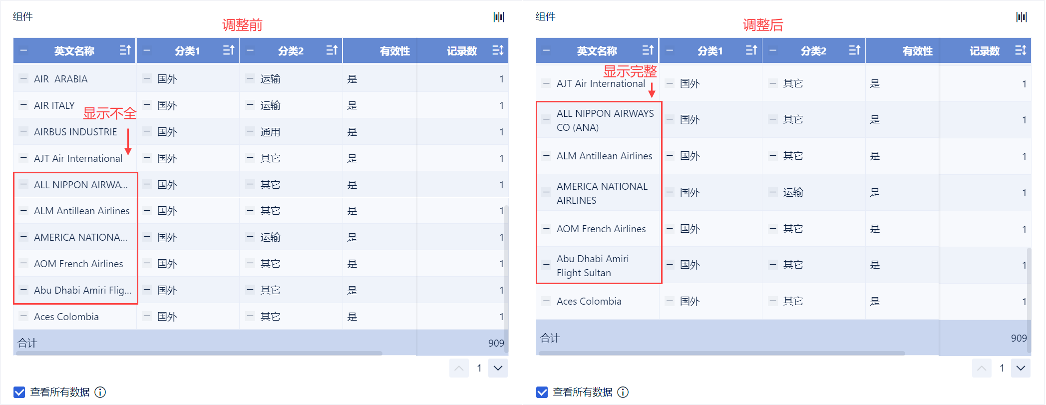 数据文字过多,需要自动换行或调整行高以显示全部内容时,如下图所示: