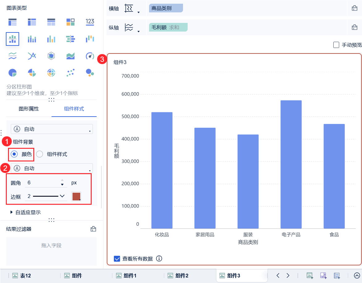 用户可以通过调整图形组件的组件样式,对组件进行一些美化,改变组件的风格。