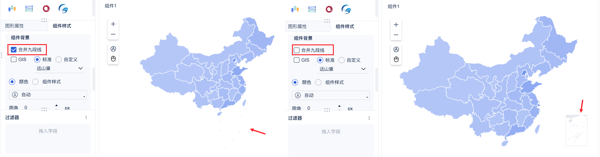 注:仅区域地图和自定义填充地图支持设置「合并九段线」