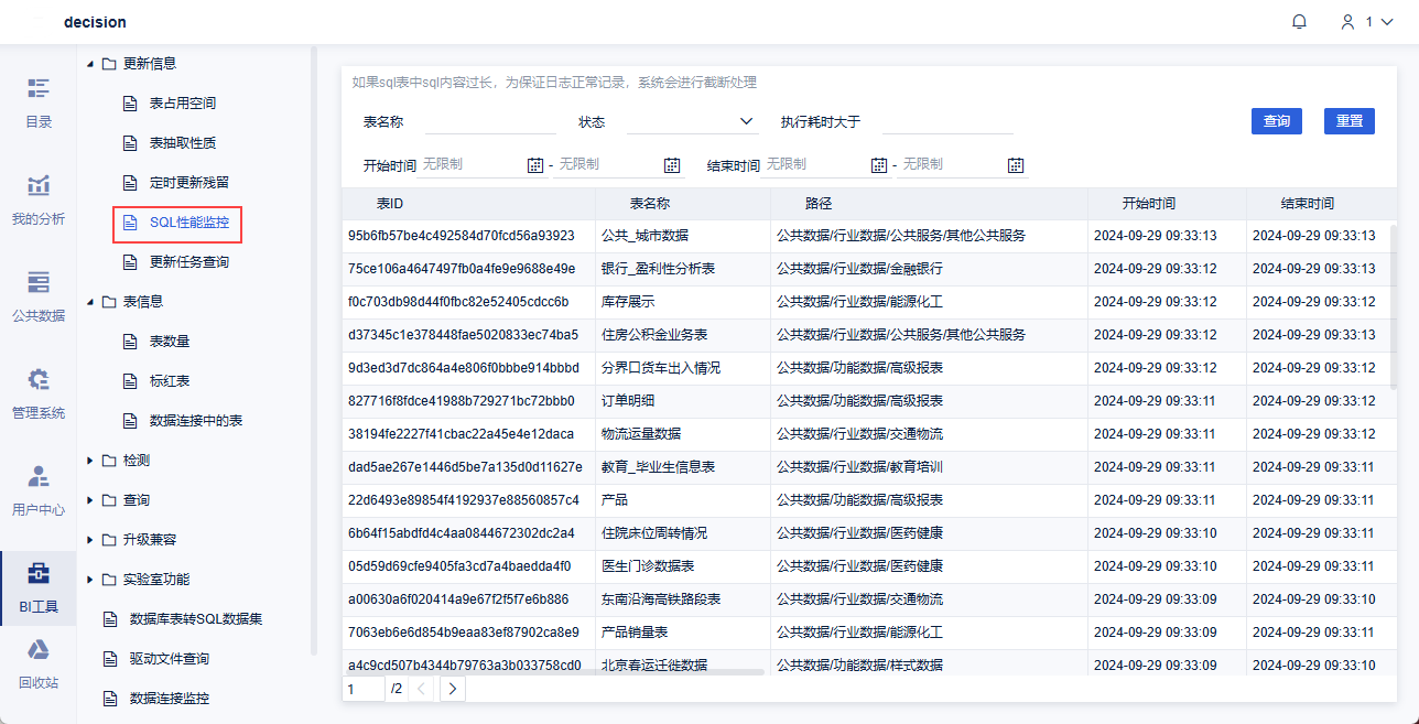如果自助数据集相关表设置为不更新,将会查询出此类数据集。