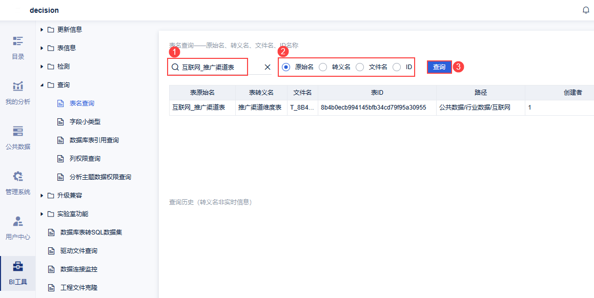 表的原始名、转义名、文件名、ID之间互查(根据一个找其他)。
