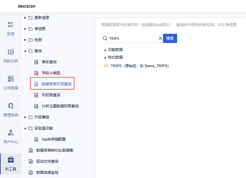 根据数据库中的表名称(包括具体sql语句),查询BI中使用该表的DB、SQL表信息。