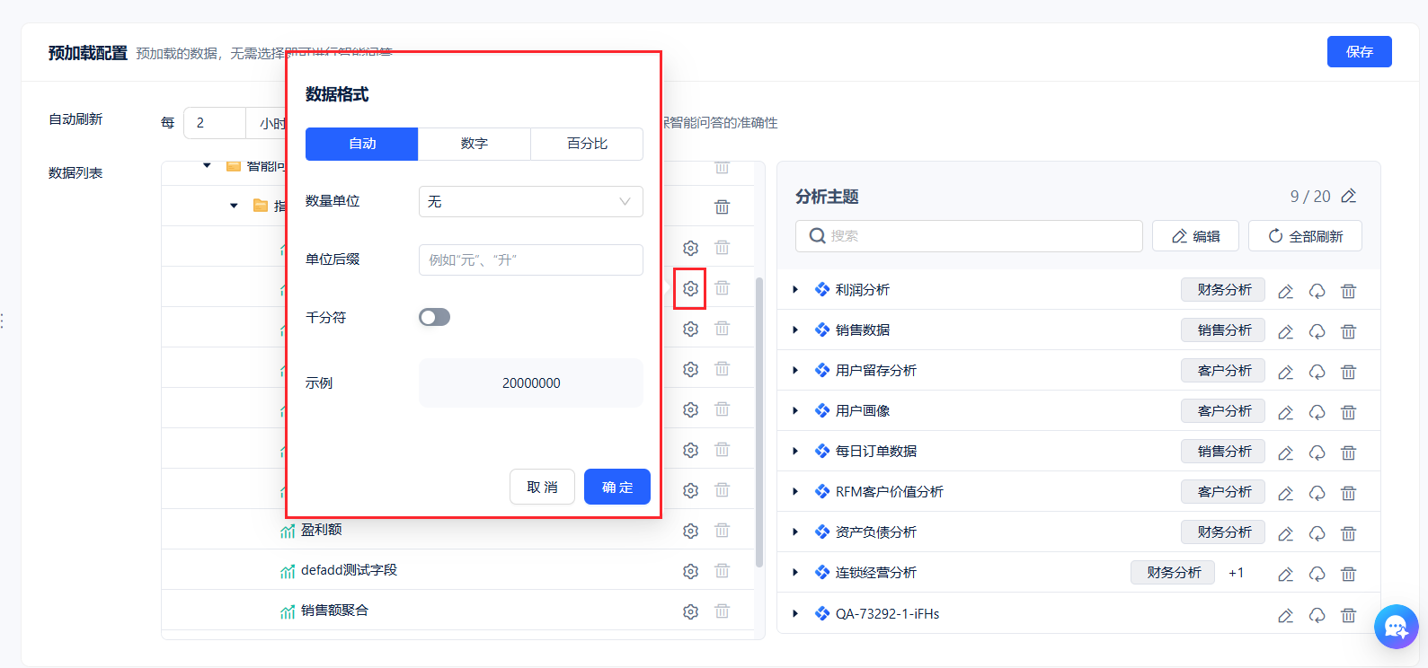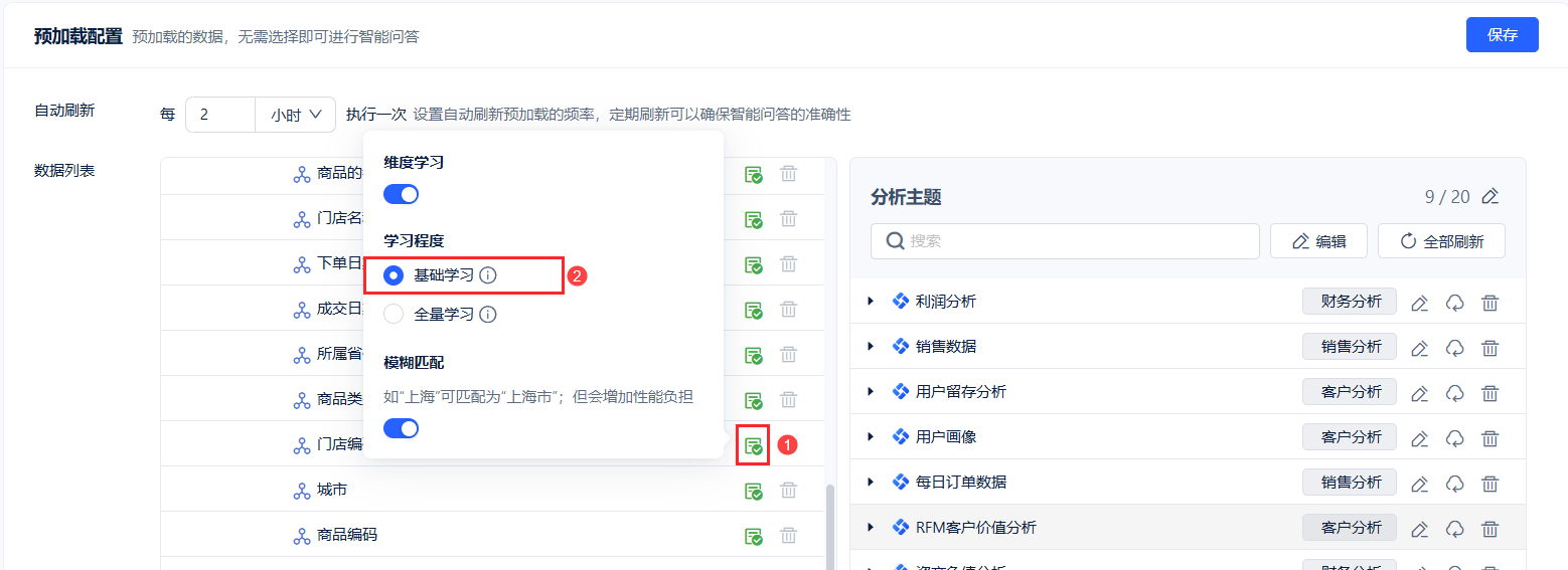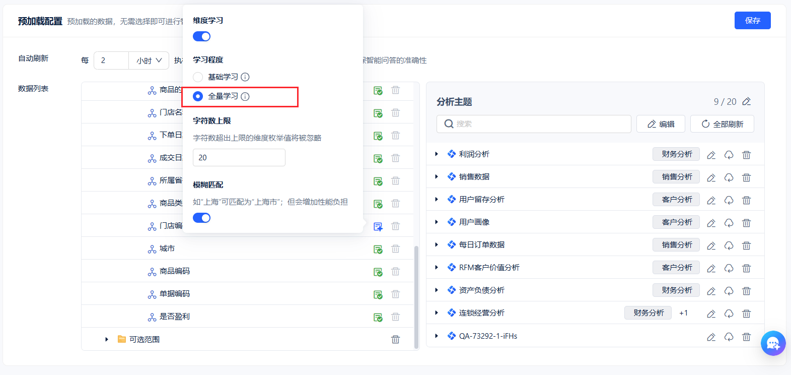 管理员通过预加载配置,将重要分析数据(比如核心业务指标等)提前加载到智能问答系统中。