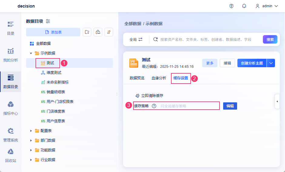 对于数据目录中所有实时数据类型的 SQL 数据集和 DB 数据库表,若该数据表的缓存设置选择了「同全局缓存策略」,则全局缓存策略对其生效。