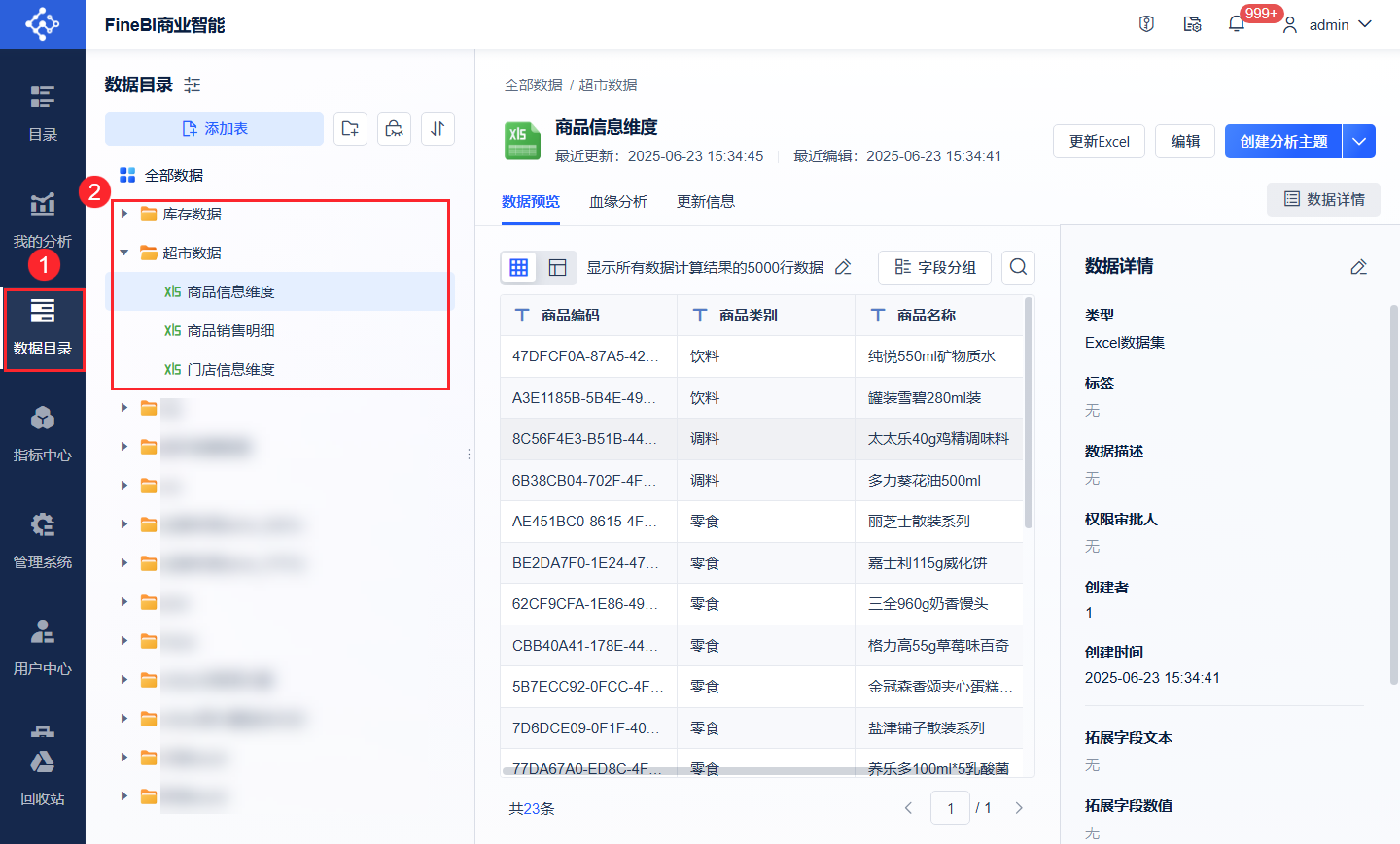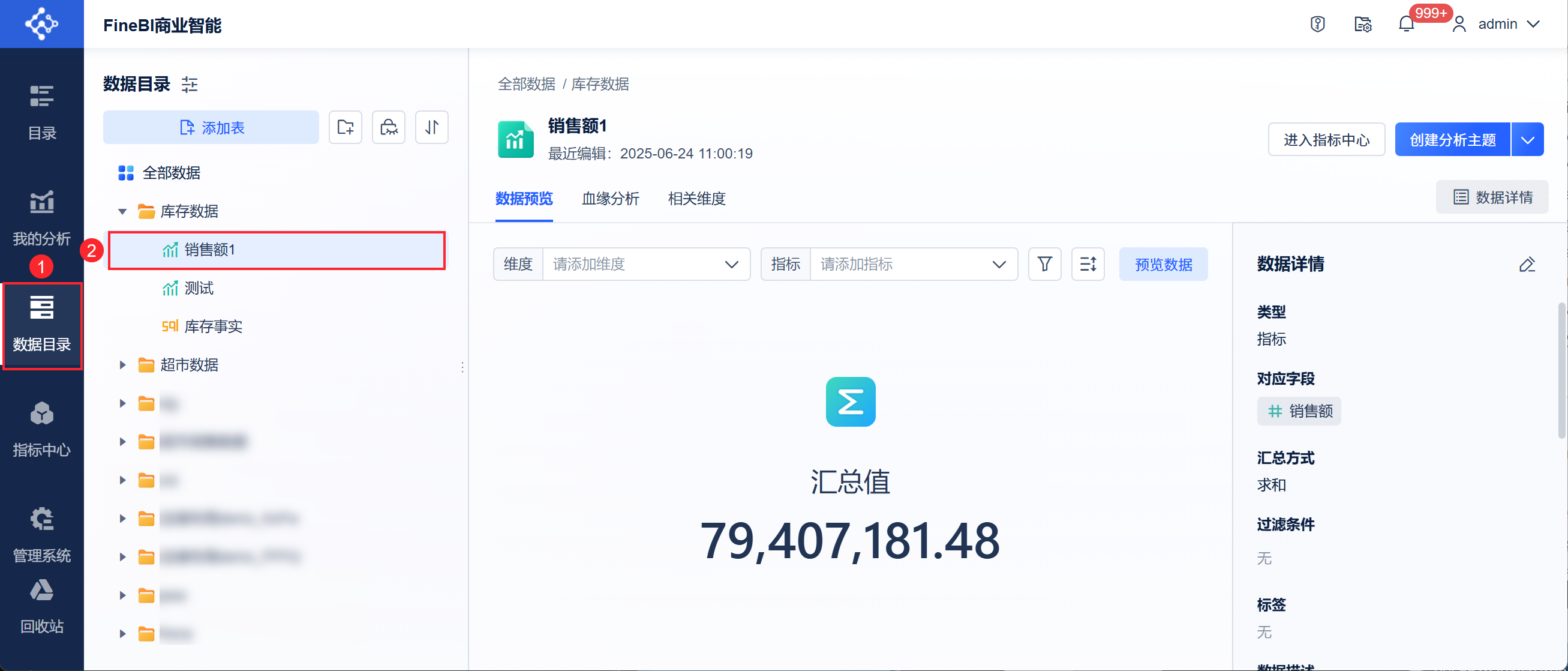 4)指标集支持整合「指标管理」和「维度管理」中添加的字段,将其放置到同一指标集下,发布到「数据目录」中,分析用户即可看到该指标集。如下图所示: