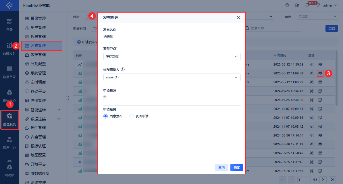 在发布管理可以审核数据模型发布的资源。如下图所示: