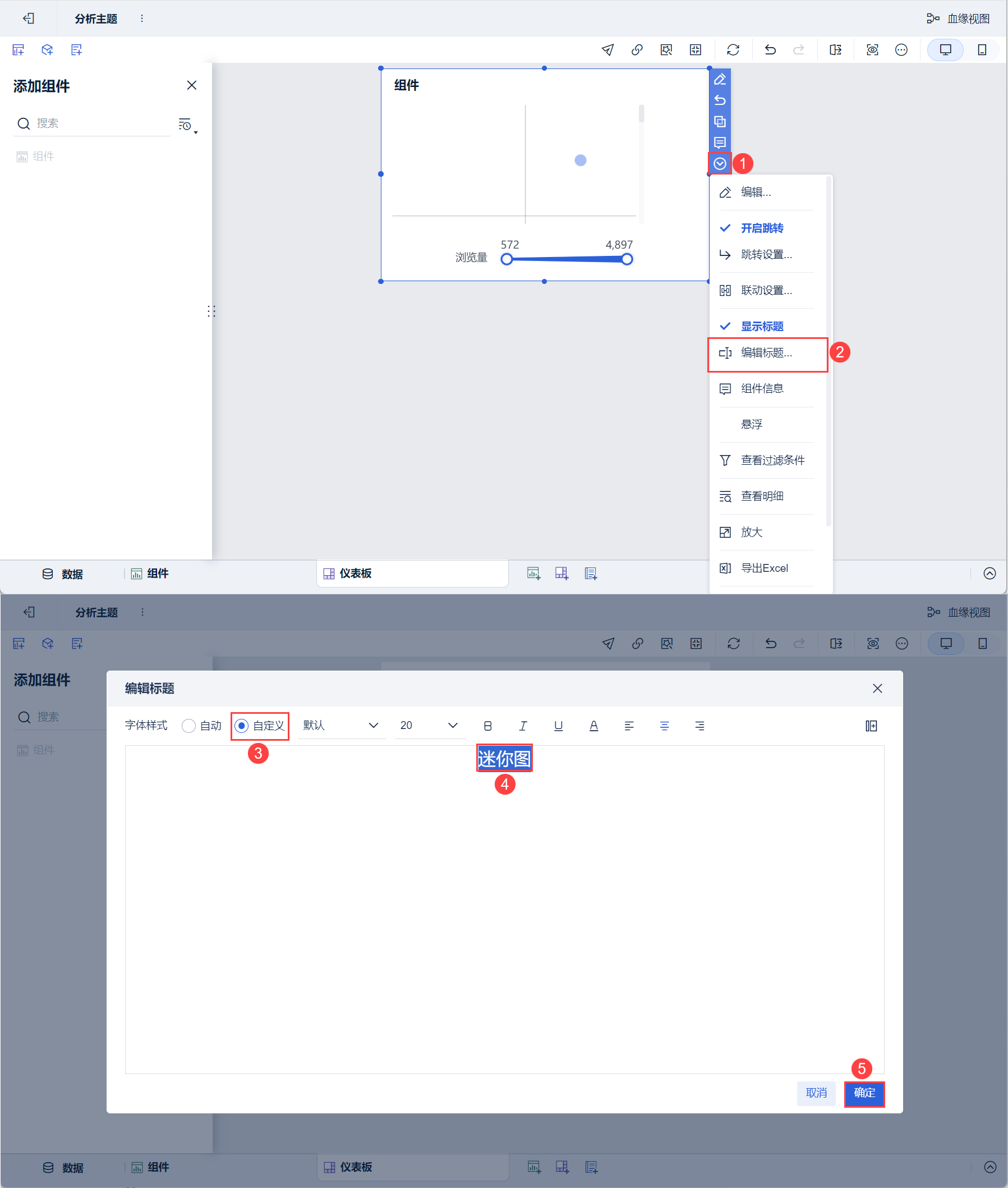 3)下拉选择「编辑标题」,样式选择「自定义」,设置标题为「迷你图」,点击「确定」。如下图所示:
