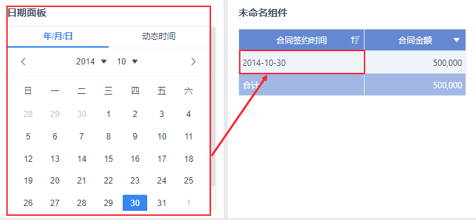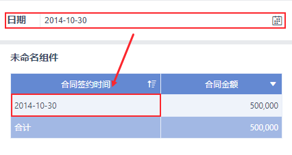 | 日期面板 | 选择2014-10-30 | 展示「合同签约时间」为2014-10-30的数据