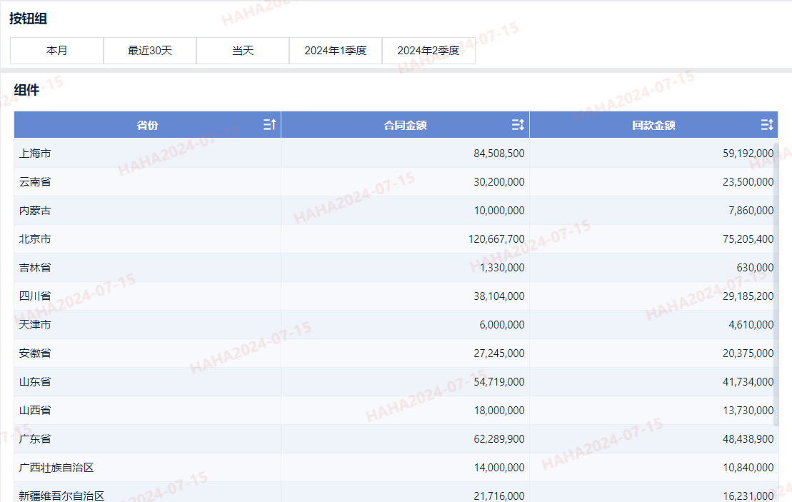 修改按钮标签为 2024年1季度、2024年2季度、当天、本月、最近30天