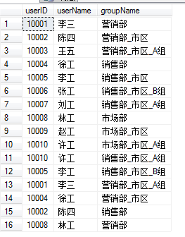 当徐工用10004的用户名登陆时,查看报表时,能看到销售组中的所有数据,以及营销组中市区A组的数据,具体效果如下图所示: