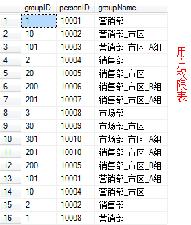 某公司在进行权限分配,权限要求如下图所示,如徐工拥有销售部的所有权限和营销部的市区部分权限,当徐工使用userID登录系统时,能够看到销售部、销售部_市区_、销售部_市区_A组、销售部_市区_B组以及营销部_市区相关的所有数据。