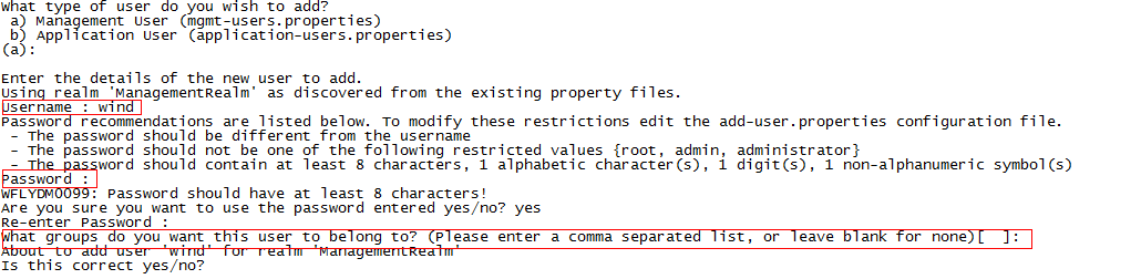 按enter键,进行添加用户操作如下图,添加用户、密码及用户组