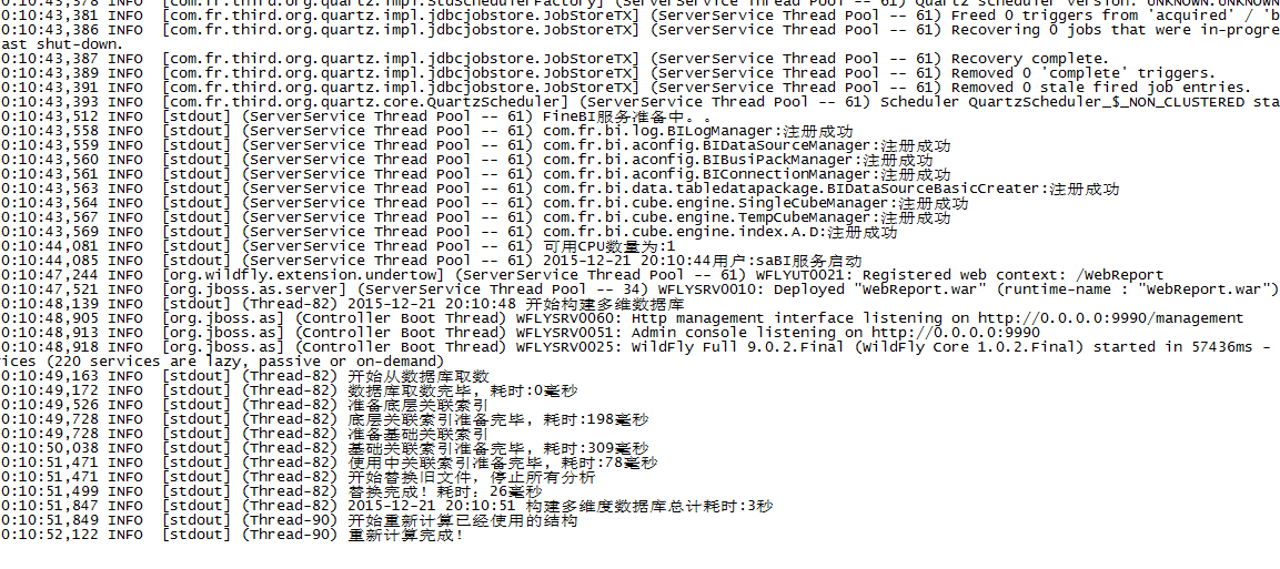 Jboss服务器从版本7以后,就改名为wildfly,当前wildfly最流行的版本是wildfly9.0;wildfly9.0在部署BI.war时,会出现“重启服务器web工程回退”的现象导致丢失配置数据和新建分析,因此BI部署在wildfly上要使用“非war包”的部署方式,详情如下。