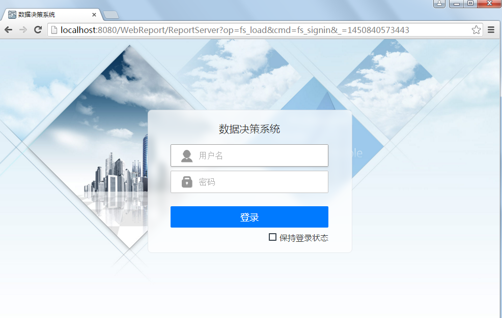 放置完成之后,双击%jboss_Home\bin目录下的standalone.bat文件启动wildfly,等启动完成之后,在浏览器中输入url:http://localhost:8080/WebReport/ReportServer?op=fs,出现登录界面,输入对应的用户名密码即可登录。如下图所示: