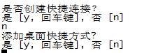 提示是否创建快捷连接,一般放置在服务器上的并不需要,输入n,按回车即可。同样桌面快捷方式一般也不需要,同样输入n,按回车键。