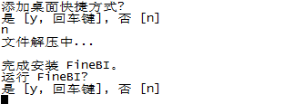 按回车键后,文件解压进行安装,完成安装后,提示是否运行,可以选择回车键将BI运行起来。