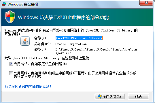 如果开启了防火墙,则会弹出Windows安全警报对话框,如下图:
