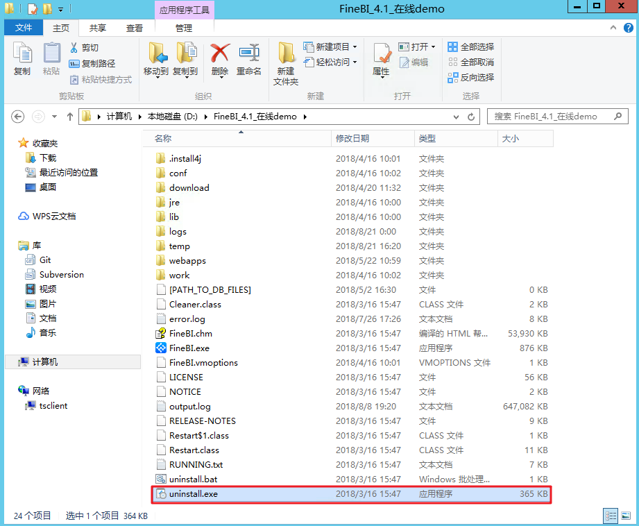 FineBI在卸载的时候需要双击安装根目录下的uninstall.exe,如下图:
