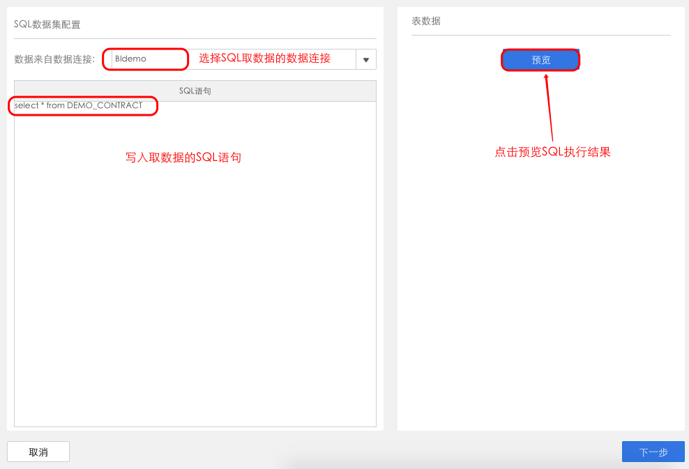 注:FineBI中sql语句和FineReport相同,都是遵循数据库语法,但是和FineReport不同的是,FineBI的FineIndex引擎不支持sql数据中含有参数。SQL数据集应用场景: