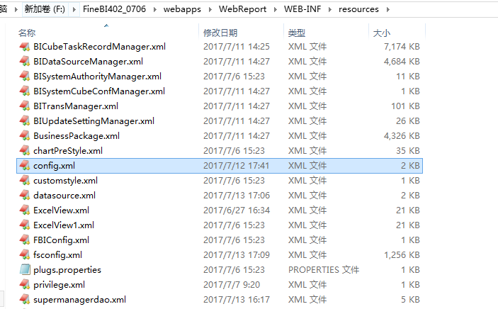 5、FineBI/webapps/WebReport/WEB-INF/resources目录下的config.xml文件需要在最后增加几行内容;