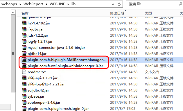 systemconfig.xml、plugs.properties6、FineBI/webapps/WebReport/WEB-INF/lib目录下的日志输出文件FineLog.properties需要替换: