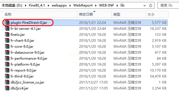 12、若使用了FineDirect引擎,参考下面2.3节,需要将原先FineBI/webapps/WebReport/WEB-INF/lib文件夹下的plugin-FineDirect-0.jar替换为4.1版本(jar包可同样联系技术支持获取),且需将原先的FineDirect插件在FineBI/webapps/WebReport/WEB-INF/plugins中删除。