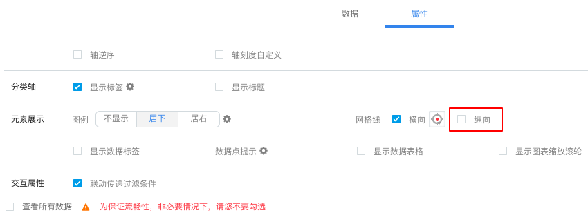2、组件属性设置中的纵向网格线在4.0.2版本中勾选显示,但升级后在4.1版本中会被取消勾选,需要重新勾选。