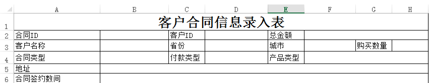 销售人员在签好一份合同之后,都需要将该合同的详细信息录入系统,其系统录入界面如下合同信息.xls样式: