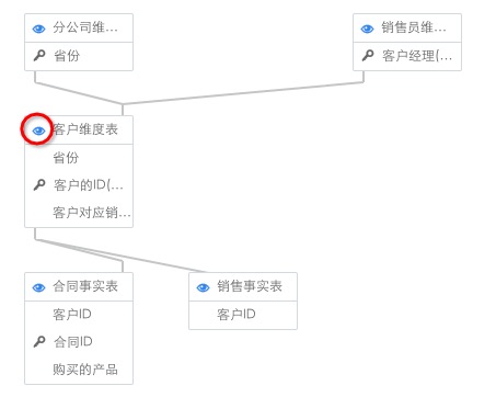 可以点击某表表名左侧的“眼睛”小图标即只显示该表及所有与之关联的表,隐藏无关联的表。