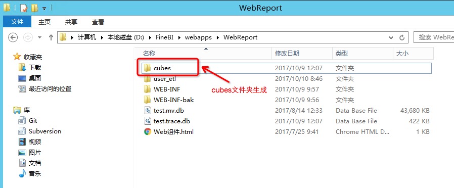 点击立即更新完成后,在默认路径Finebi/webapps/WebReport文件夹下会生成一个cubes的文件夹,如下图: