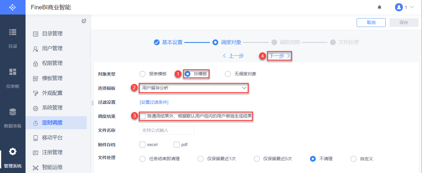 调度对象的详细介绍请参见:定时调度任务设置步骤