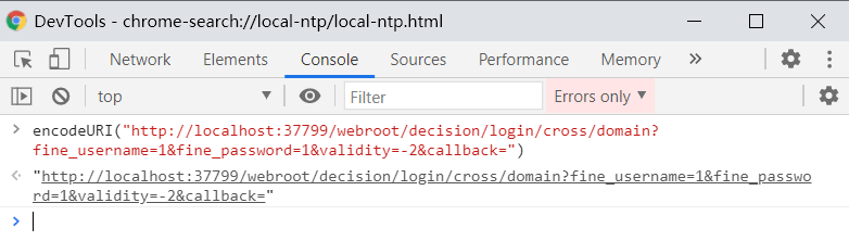 encodeURI("http://ip:端口/webroot/decision/login/cross/domain?fine_username=XX&fine_password=XX&validity=-2&callback=") // xx分别替换为管理员用户名密码点击回车,跳出访问地址,如下图所示: