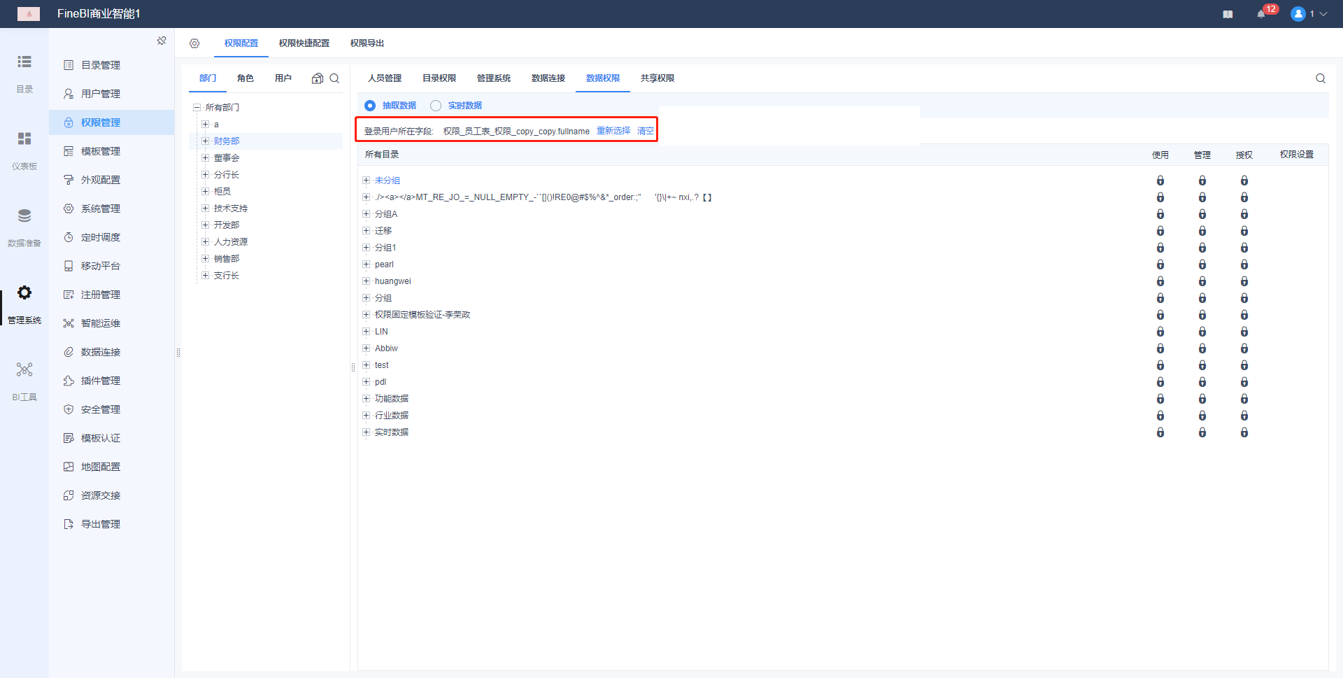 权限失效情况如下:1、直连模式的数据表,权限设置时使用了抽取模式的表,进行权限配置。2、抽取模式的数据表,权限设置时使用了直连模式的表,进行权限配置。