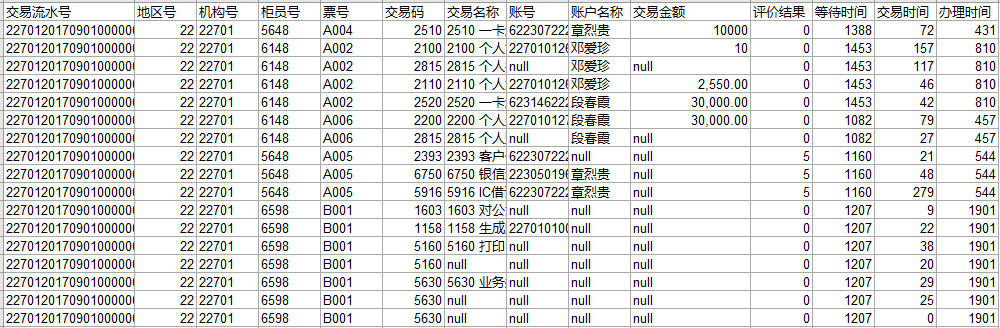 业务流水表:包含了对应职员能看到的交易数据,如下图所示: