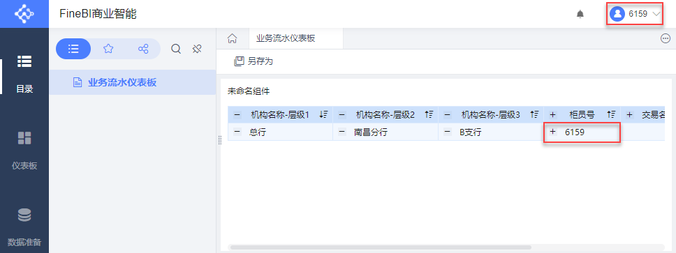 分别使用支行长、分行长、柜员账号登录数据决策系统,查看「业务员流水仪表板」。
