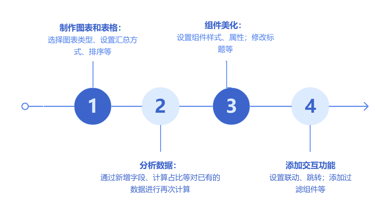 | 分析数据 | 通过新增字段、计算占比等对已有的数据进行再次计算 | |