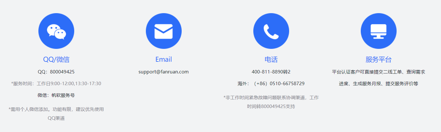 注:初次接入技术支持服务,需要通过身份验证,确定其所属公司为帆软的合作客户。