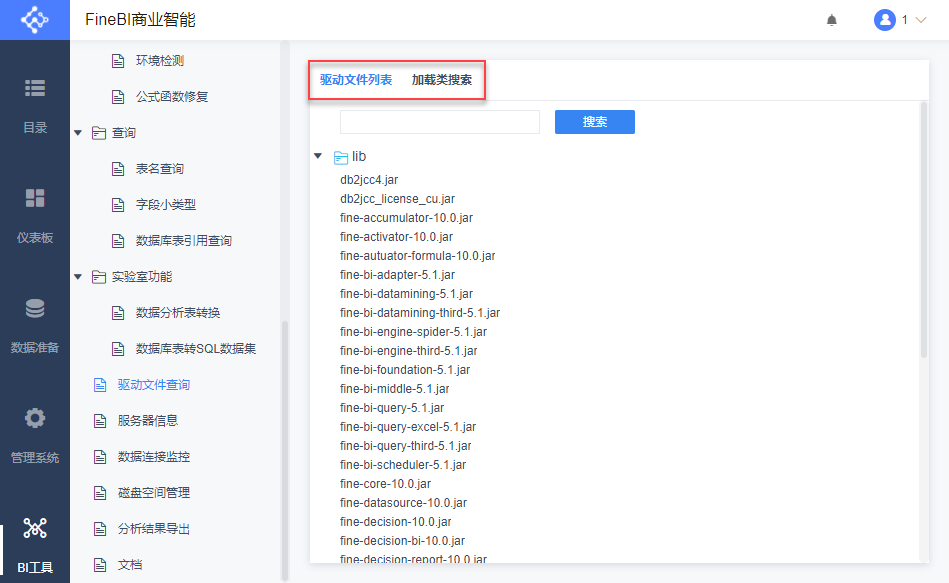 提供视图化展示BI工程,web-inf/lib文件夹、以及web-inf/驱动隔离文件夹;支持搜索加载类路径