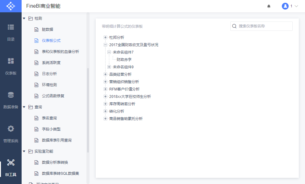 检测出带明细计算公式的仪表板,避免出现严重性能问题。