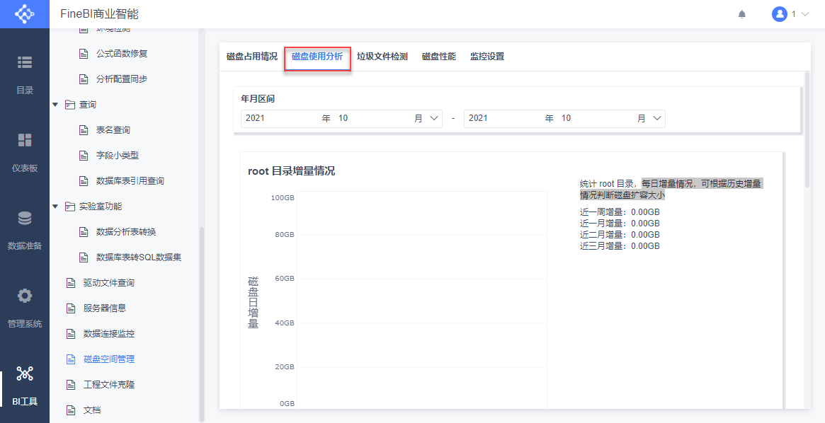 展示并监控磁盘使用趋势,判断磁盘使用的合理性;依此做为磁盘扩容方案的推荐; 占用磁盘的垃圾文件查询+清理