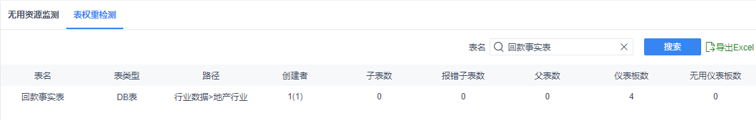 用户可手动输入数据表名,查询表权重信息,判断该表的影响范围。
