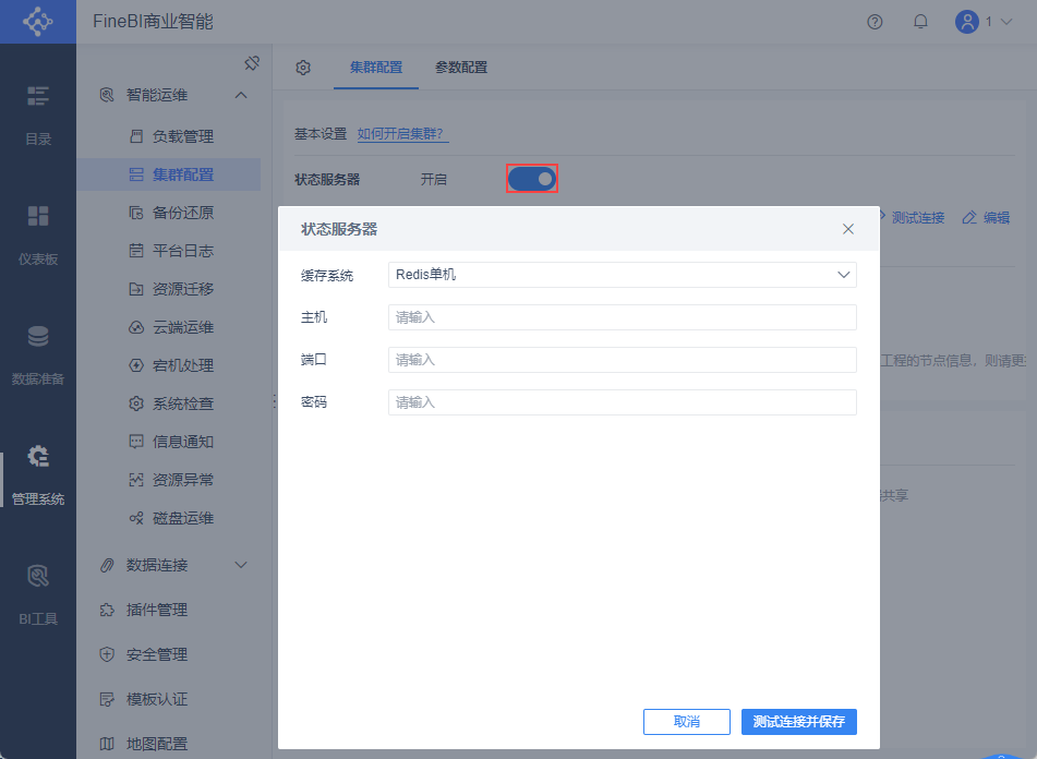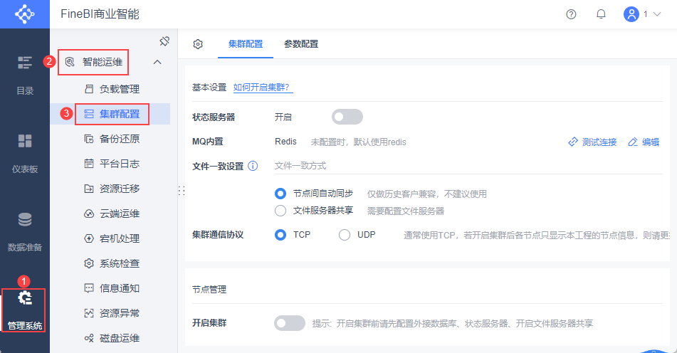 选择「管理系统>智能运维>集群配置」,进入集群配置界面,如下图所示: