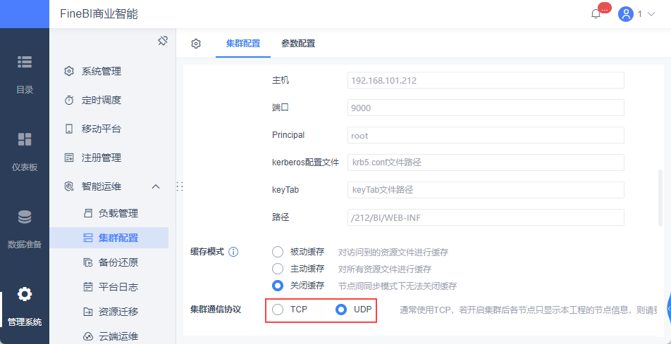 开启集群状态下可以切换集群通信协议,不过重启工程后方可生效。