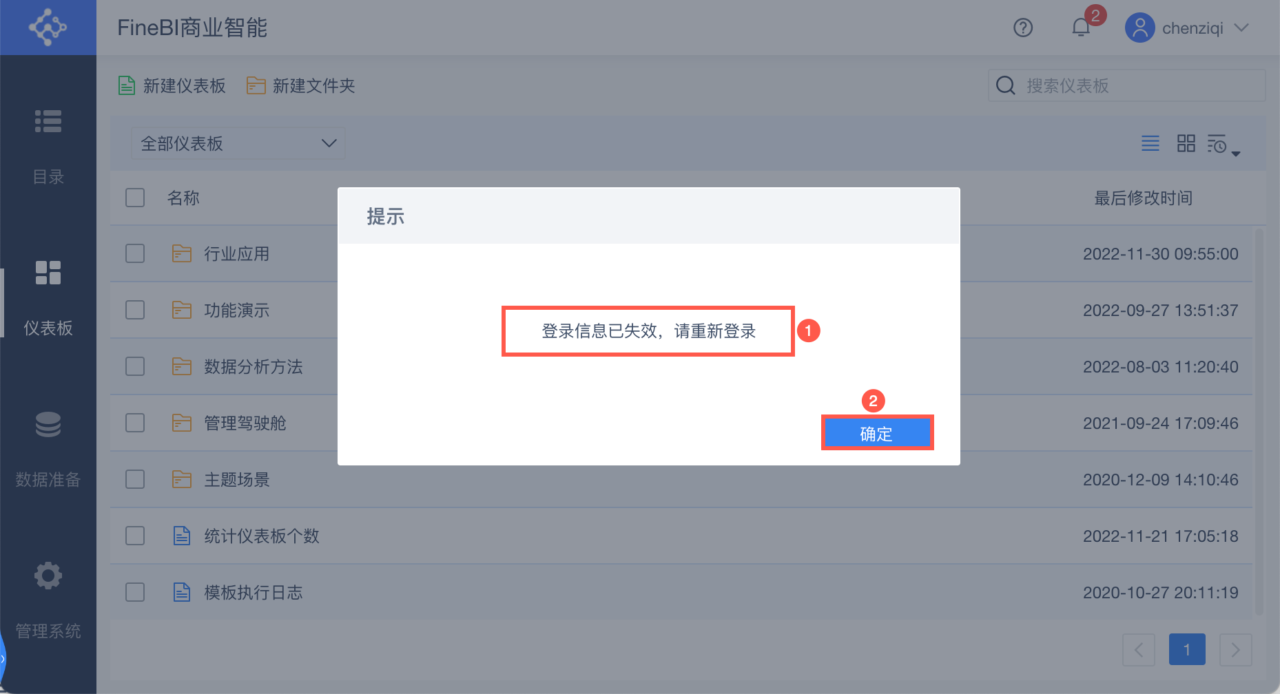 开启「Token认证增强」后,如果请求 IP 发生变更,系统会弹窗提示「登录信息已失效,请重新登录」。