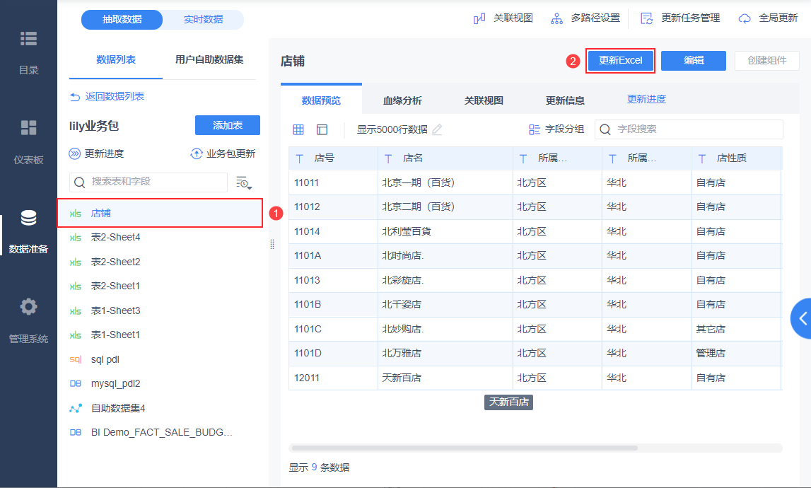 示例数据下载:店铺.xlsx ,下载后上传至 FineBI 。