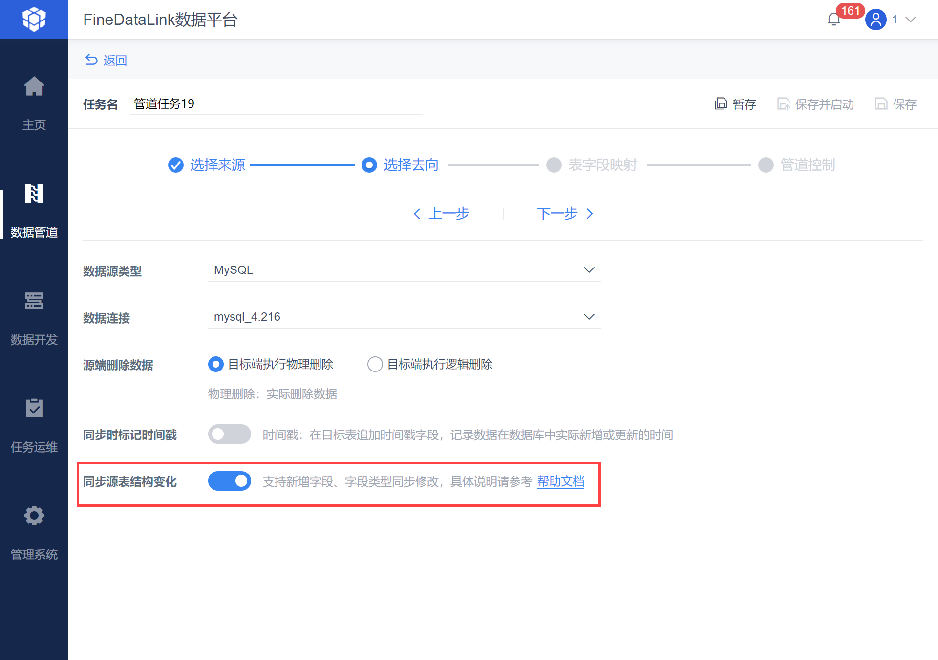 在使用管道任务进行数据实时同步过程中,来源端结构可能因业务调整等原因发生变动,如增删表、增删字段、修改字段名称、修改字段类型等,此时,用户希望目标端可以自动同步这些来源端的调整,不需要人为的进行数据表的调整。