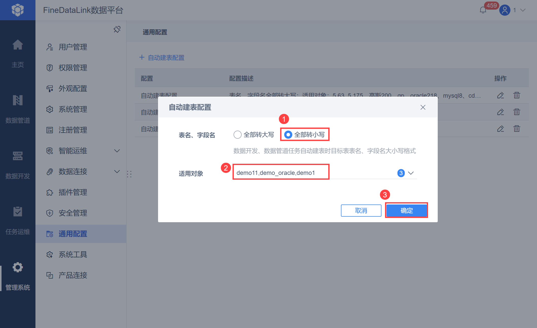 设计「数据管道」任务进行「自动建表」同步数据时,表名和字段名支持大小写转换;表名、字段名支持大小写自动纠正。