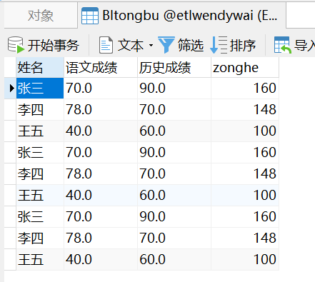 可以看到 etlwendywai 数据库中新增 BItongbu 表。如下图所示: