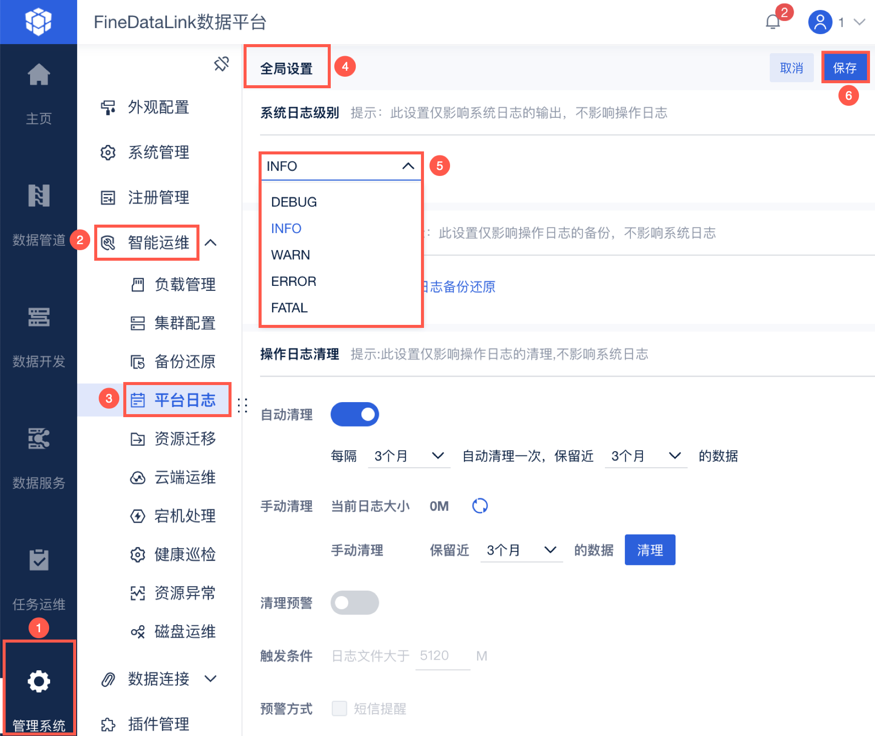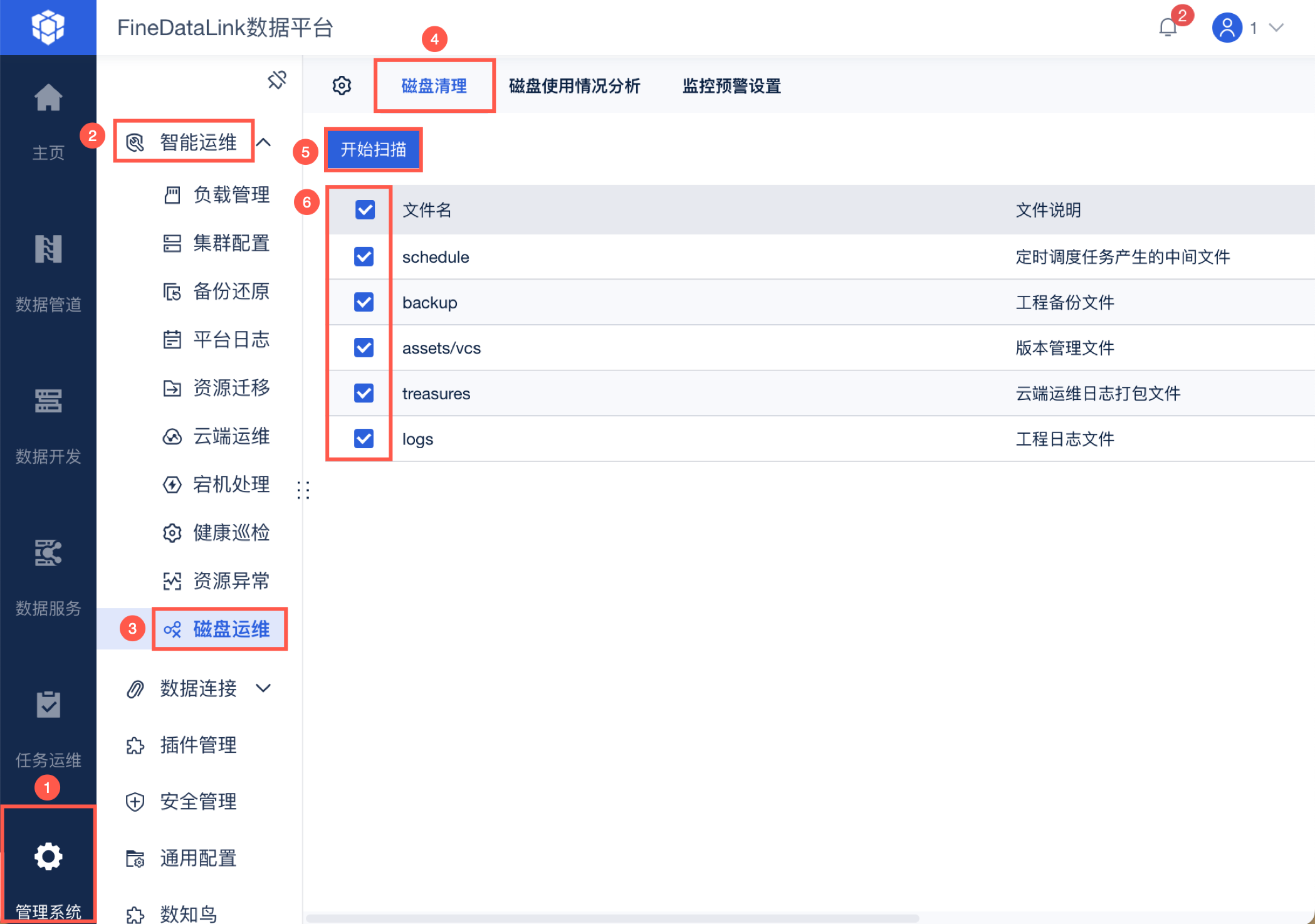 | 业务检查 | 包括:finedb、日志级别、日志清理、自动备份磁盘占用限制、自动备份保留数量限制、定时调度任务清理配置 | ||