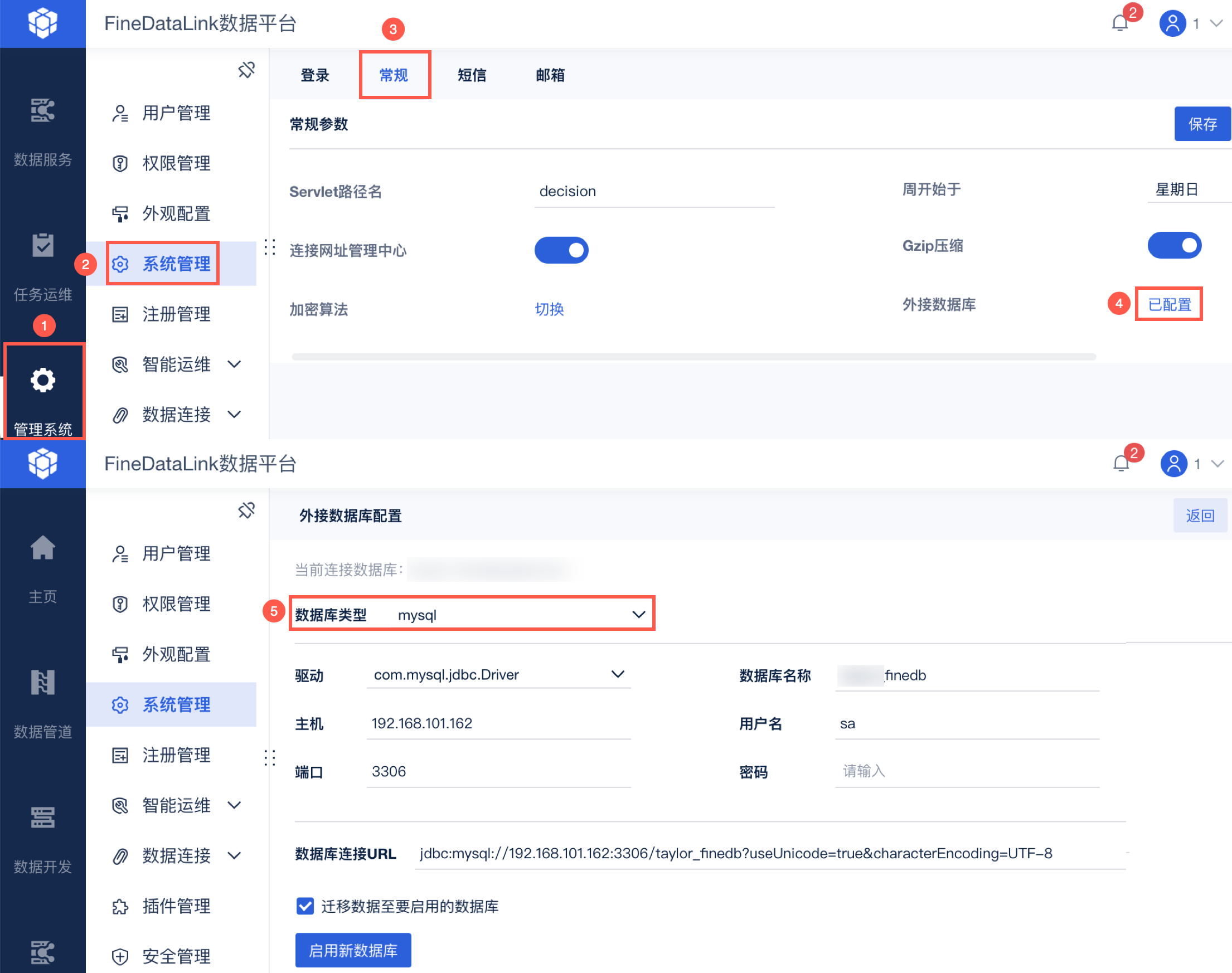FineDataLink 支持使用内置 FineDB 数据库或启用外接 FineDB 数据库。